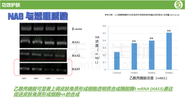 事實上,乙酰殼糖胺是透明質(zhì)酸的分子前體,它在肌膚內(nèi)轉(zhuǎn)化為透明質(zhì)酸,從而發(fā)揮其保濕和滋潤的功效。